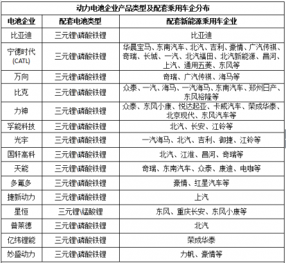 附表:動力電池企業產品類型及配套客車企業分布