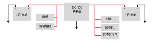 德國汽車制造商已開始定義并構建基于48V電池的系統。在比傳統12V電池更低的電流下,48V電池可提供更多的功率,同時節省線束重量,且不會影響性能。在這種發展過程中,LV148標準已成為雙電池汽車系統的主要出發點。雙電池系統的頂層框圖如圖1所示。