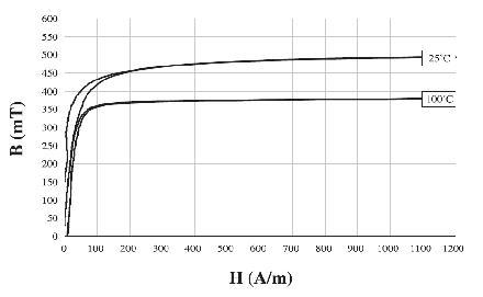 我們?cè)谠O(shè)計(jì)反激變壓器以及一些儲(chǔ)能電感時(shí),設(shè)定最大磁通量Bm尤為關(guān)鍵。由于電源起機(jī)和短路保護(hù)時(shí)最大磁通量Bm大于穩(wěn)態(tài)工作時(shí)的Bm,所以我設(shè)定變壓器的Bm時(shí)需要預(yù)留足夠的裕度。如圖 1所示,磁芯溫度為100℃曲線可知Bm=0.35T時(shí)磁芯接近飽和,所以出于對(duì)電源起機(jī)、輸出過(guò)流和短路等極限情況考慮,鐵氧體P4材質(zhì)的變壓器的穩(wěn)態(tài)Bm一般小于0.25T。